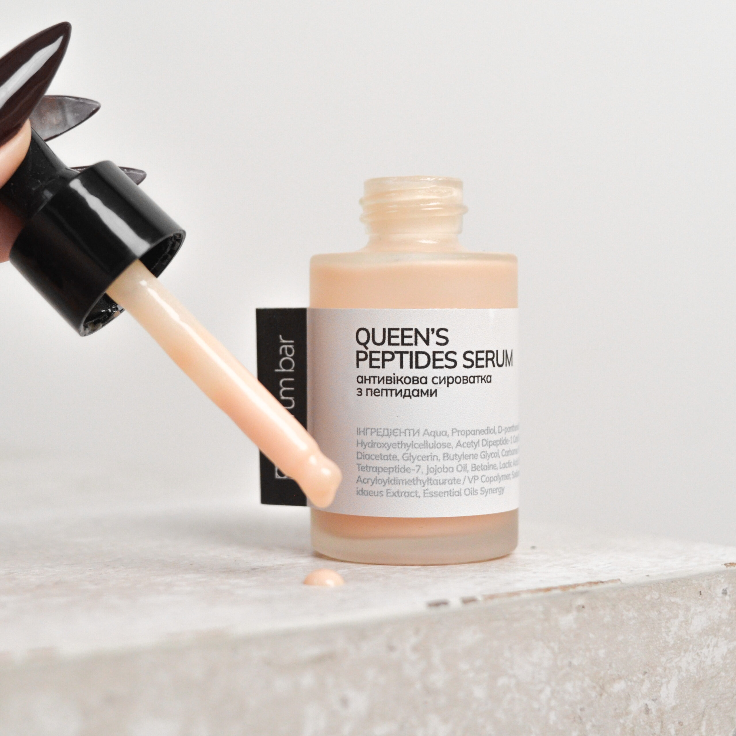 • за бажанням можна наносити крем, але використання крему після Queen’s Peptides Serum не обов’язково.